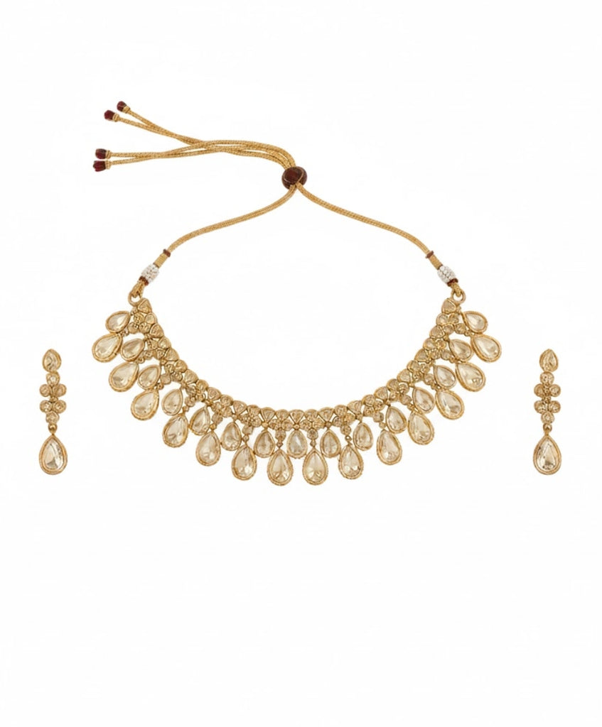 An exquisite Real Moissanite Stone choker and earring set, featuring a cascade of large, brilliant, pear-shaped drops that capture light for a stunning, regal appearance.